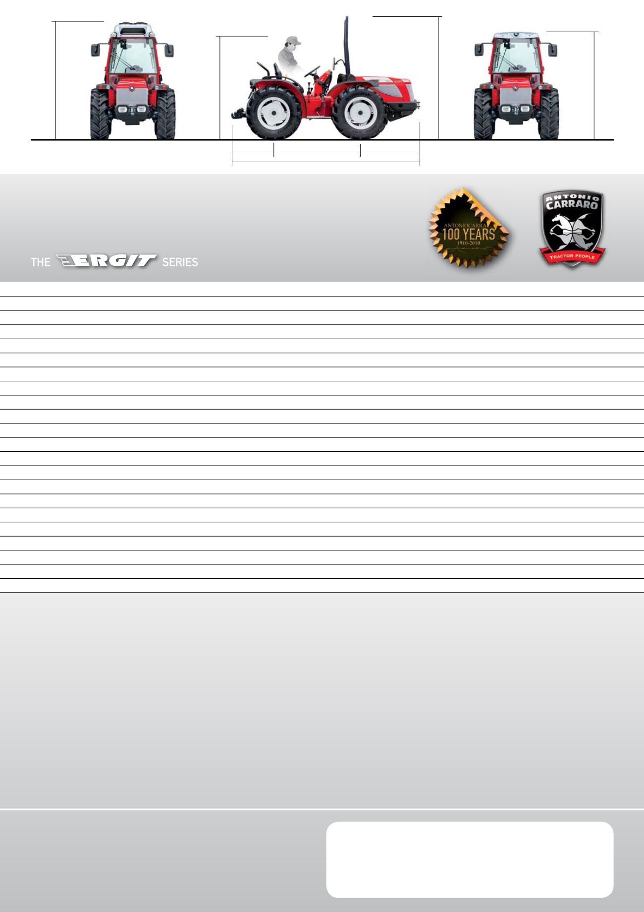 • Reversible control tower • Rear or front/rear differential lock with electrohydraulic control • Fixed lifting arms